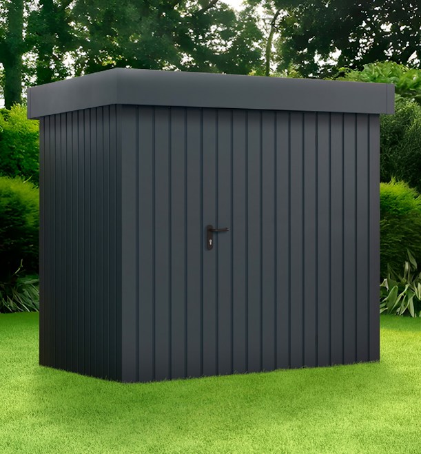 Wie auch das Modell mit Flachdach überzeugt das Gerätehaus mit nahezu unsichtbaren Verschraubungen und präziser Vorfertigung für einen schnellen, mühelosen Aufbau. Erhältlich in 14 Größen, zwei Designs und drei Farben, lässt es sich individuell anpassen. Breite Türen und eine komfortable Durchgangshöhe bieten maximalen Komfort. Die hochwertige Konstruktion gewährleistet Langlebigkeit und erhöht die Sicherheit vor Einbruch und Witterungseinflüssen.