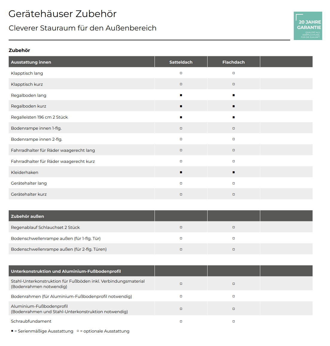 Mit seinem Satteldach vereint das Gerätehaus Funktionalität, Schutz und Ästhetik und wird so zum besonderen Blickfang in Ihrem Garten. Entdecken Sie auf den folgenden Seiten unser umfangreiches Zubehör für die individuelle Gestaltung Ihres Gartenhauses.