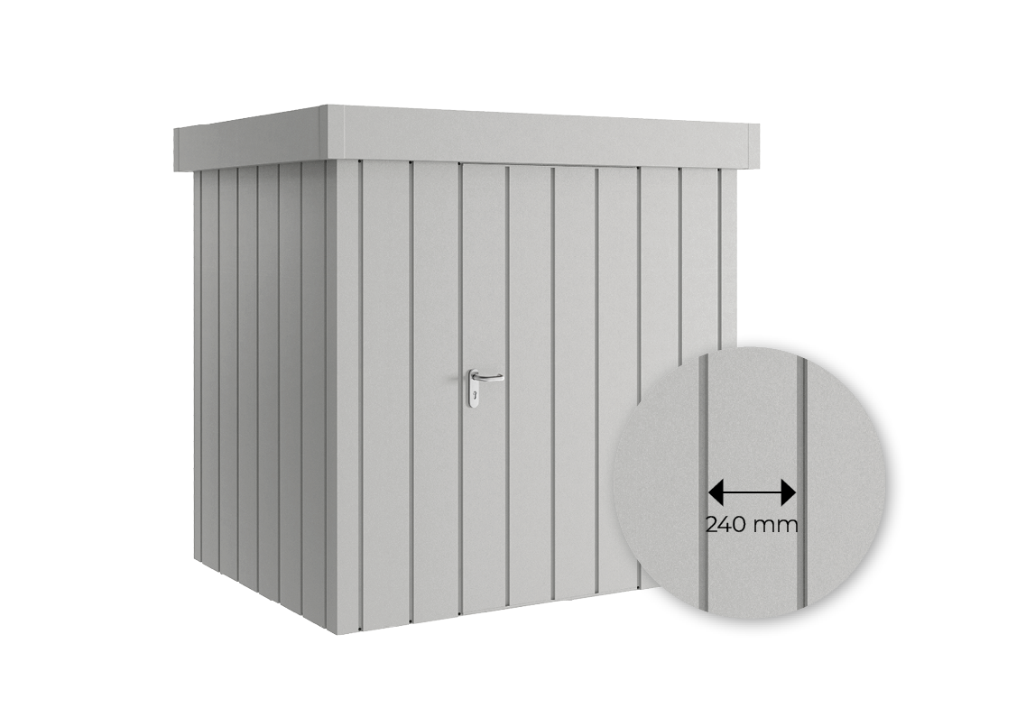 Das Juno Gerätehaus mit Flachdach präsentiert zeitgemäße und moderne Gestaltungen für Ihren Garten. Die Flachdach-Variante überzeugt durch ein klares, modernes Design und bringt sowohl Ordnung als auch Stil in Ihren Außenbereich. Das Modell zeichnet sich durch seine nahezu unsichtbaren Verschraubungen aus.
