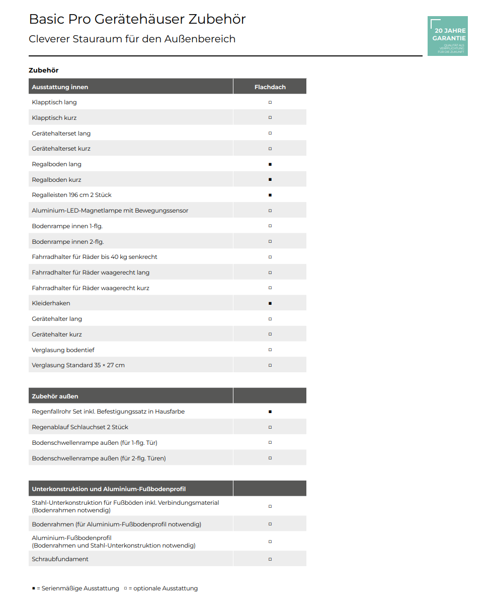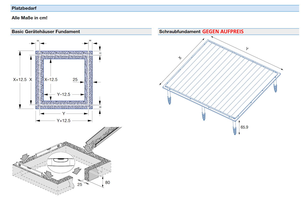 - Gepflasterte Grundfläche mind. in der Größe des Gerätehauses