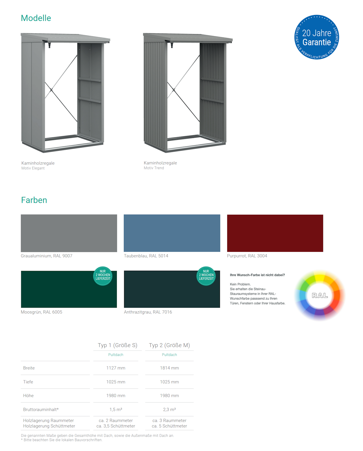 Sie möchten Ihr Kaminholz das ganze Jahr über trocken und gut geschützt in Ihrem Garten verstauen? Dann sind die Steinau Kaminholzregale für den Außeneinsatz die ideale und saubere Lösung für Sie.