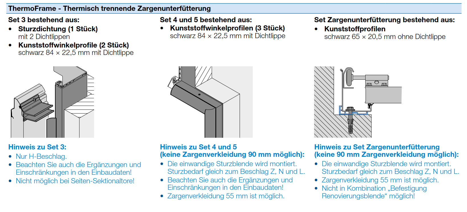 im oberen Bereich des Tores den Verlust von Heizenergie aus dem Garageninneren. Sie erhalten den optionalen ThermoFrame Zargenanschluss für alle Garagen-Sektionaltore.
